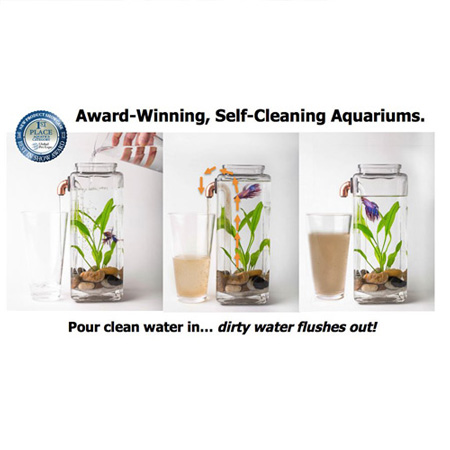 آکواریوم جادویی خانگی به شکل یک گلدان مربعی بوده که دارای لوله ی تمیز کننده است و شما فقط کافیست که آب تمیز را داخل آکواریوم جادویی ریخته و شاهد خارج شدن آب کثیف از لوله ی تمیز کننده ( cleaning tank) بوده و از بوی نامطبوع اکواریم ها جلوگیری کنید در عین حال که زیبایی یک آکواریوم بزرگ را دارا بوده و به خصوص برای بچها ( که از نگهداری موجودات آبی لذت میبرند ) بسیار جالب است.